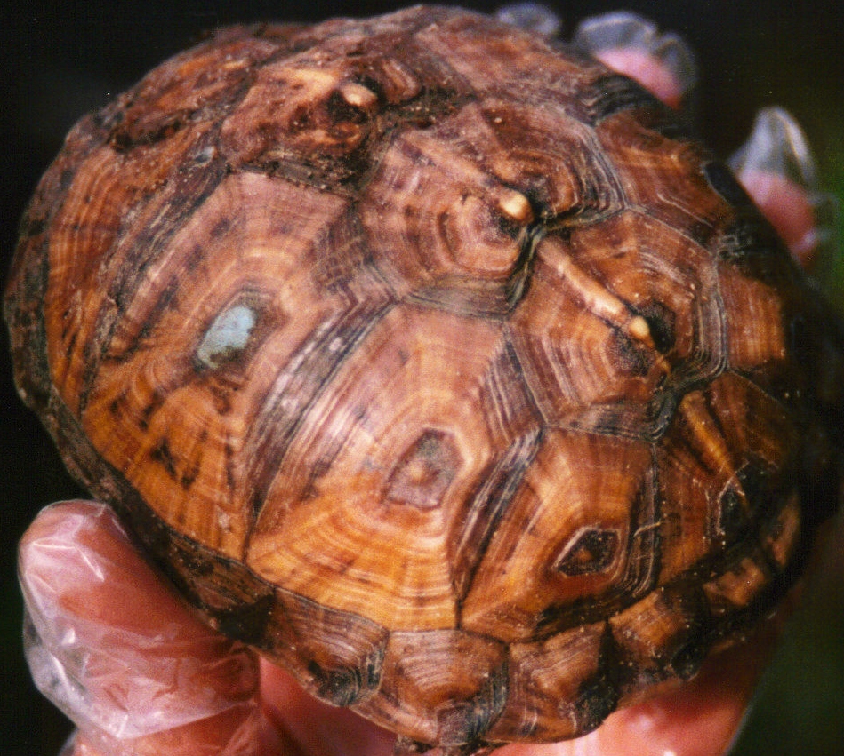 in sun-exposed region of carapace after 46 mo outdoors, with color deficit