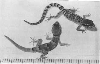 Fig. 8. Two male Tropiocolotes steudneri from north of Elat (1962); The lower animal may be T. nattereri.